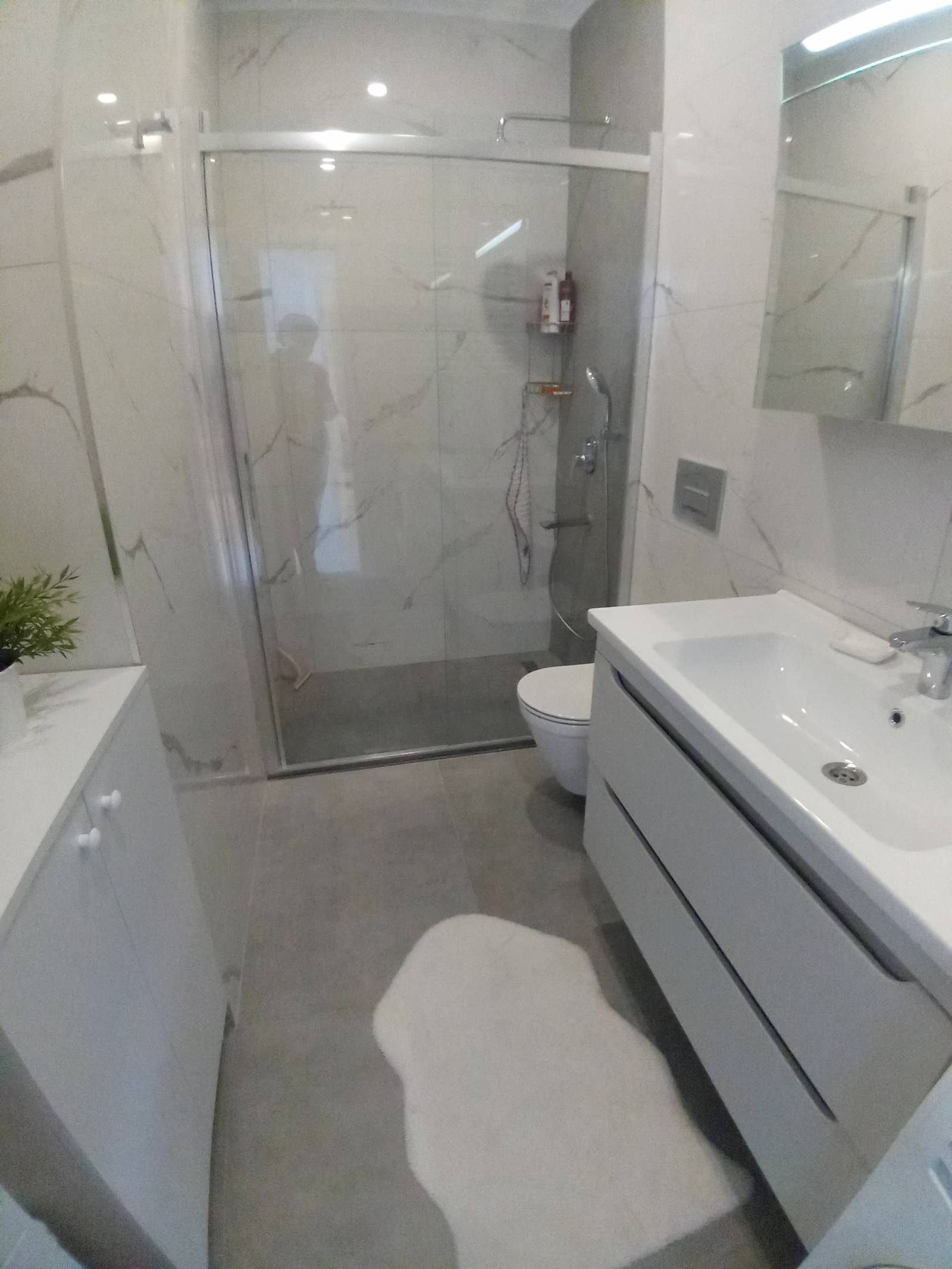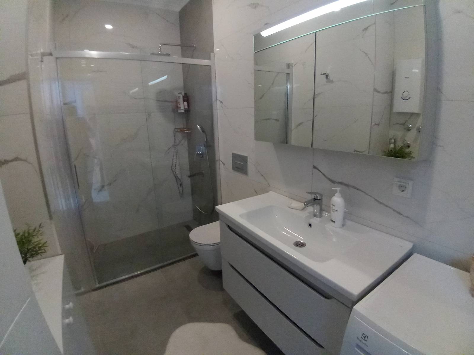Kapalı mutfak, ebeveyn banyoludur. Üst segment ankastre set ve tüm beyaz eşyalar bulunmaktadır.